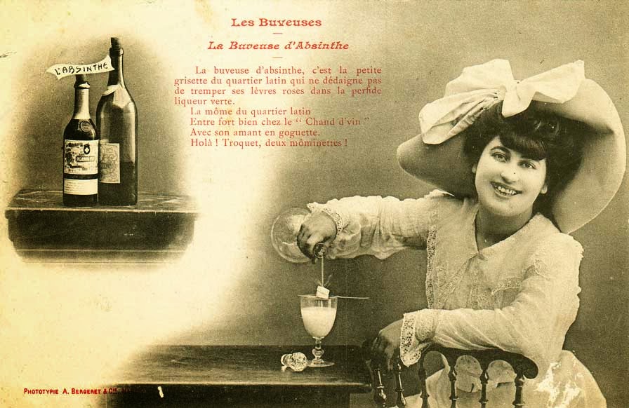 Absinthe has often been portrayed as an addictive psychoactive drug due to trace amounts of the chemical compound thujone; by the early 1900’s it had become a primary target of both the temperance movement and French wine producers who saw its popularity as a threat to their sales, already decimated by the  phylloxera louse that had destroyed most of the vineyards by 1890. By 1915 it had been banned in the